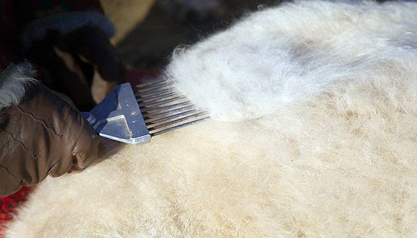 We work exclusively with local nomadic herders to source the highest quality raw cashmere, hand-combed using traditional methods.